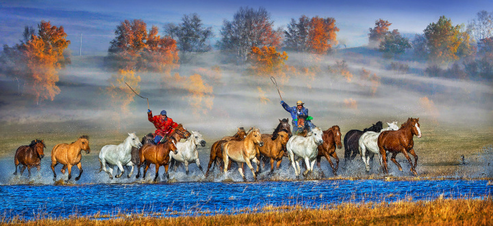Autumn Horses Rushing