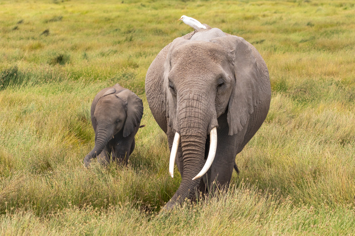 MOTHER CALF AND ONE BIRD