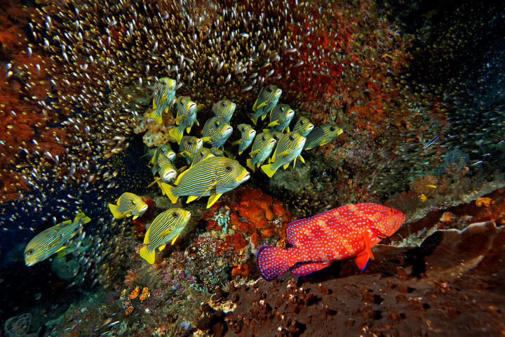 Coral Grouper And Sweetlips Fish