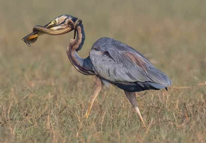 Purple Heron With Snake 0180